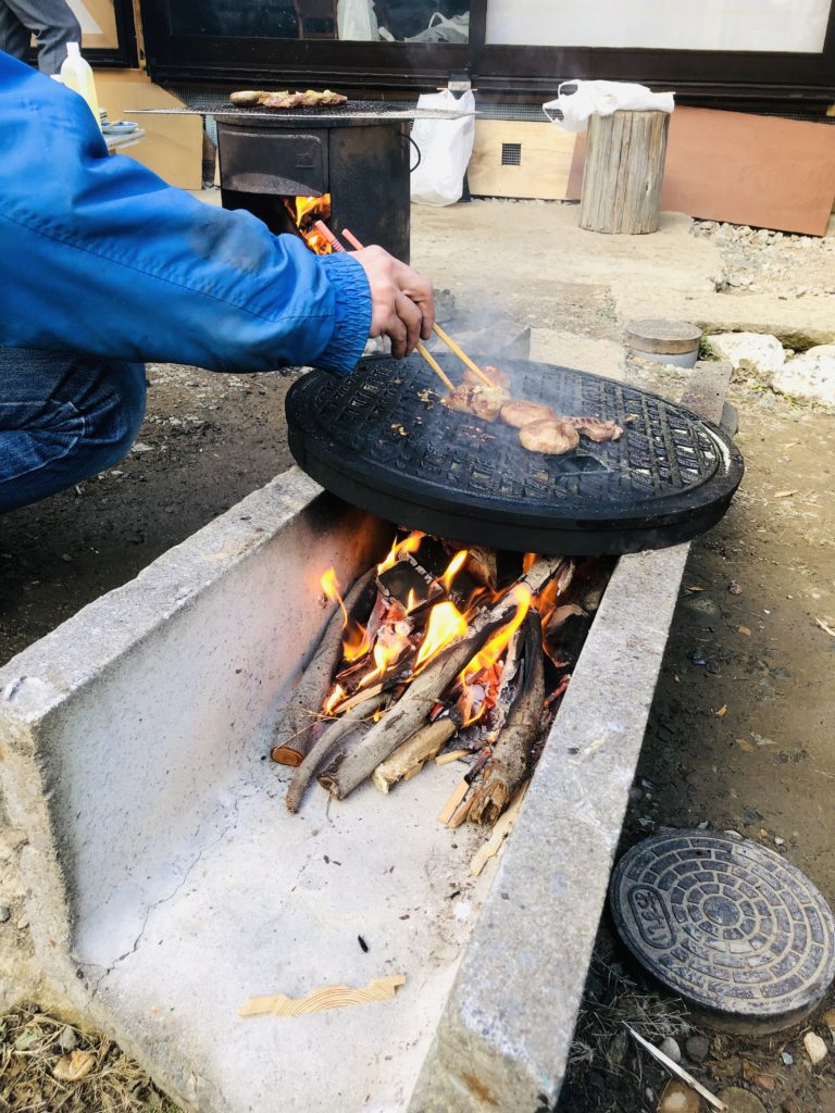 厚い鉄製マンホールは熱が逃げず、溝に油が垂れ、肉を柔らかくしてくれます