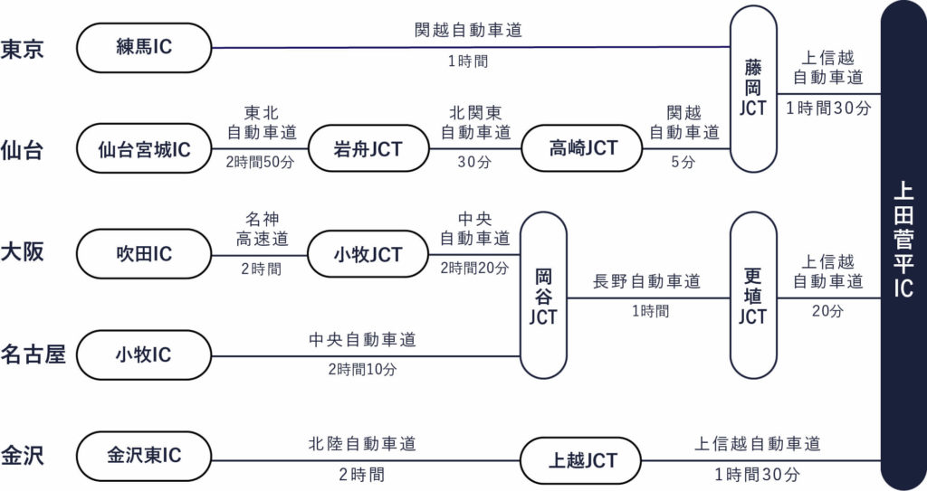 上田駅↔︎いがぐり 車で約20分
