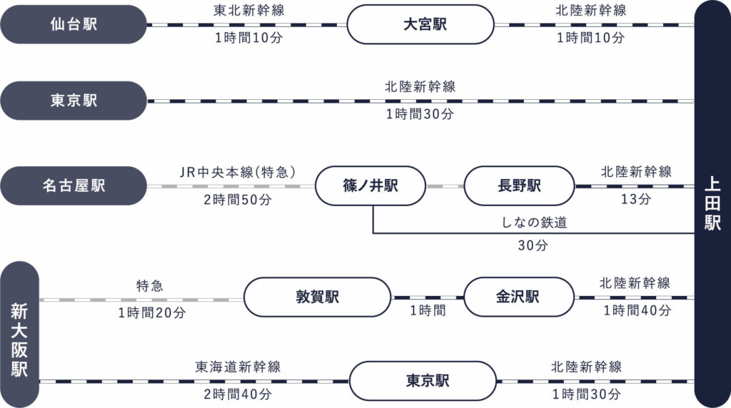 東京駅↔︎上田駅 約90分